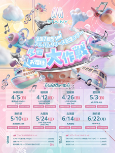 | STAiNY 全国7都市アルバムリリース記念ツアー 「全国お届け大作戦」 STAiNY 2026年4月26日(日) 会場:LIVE HOUSE enn 2nd 仙台市青葉区中央2-7-11 アルトスクエア B1F Red 開場 19:00 / 開演 19:30 Aチケット(前方エリア+囲み写メ+5pt) \5000(D代別) 一般チケット\1000(D代別) 新人隊員チケット(STAiNY初めての方)\0(D代別) ※3/27(金)22:00〜一般発売 ※TIGET ※整理番号付 ※開場の15分前より、整理番号順に整列を開始致します ※アルコール類の持込、及び泥酔者の入場はお断りいたします。 ※リフト、柵に登る、前列へ突っ込むの危険行為、ヤジ等、まわりのお客様の迷惑となる行為は全面禁止といたします。 ※ルールをお守りいただけないお客様へ対しては、退場処分とさせていただきます。 入場をお断り、ご退場いただく場合でもチケット代等の返金は一切いたしません。 ※物販・特典会への参加には本公演のチケットが必要となります。 主催:株式会社SCOT 制作:株式会社リーディ お問い合わせ:customer@leadi.co.jp |