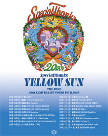| YELLOW SUN -THE BEST- 20th ANNIVERSARY WORLD TOUR 2026 SpecialThanks 2026年7月12日(日) 会場:LIVE HOUSE enn 3rd 仙台市青葉区中央2-7-11 アルトスクエア B1F Blue 開場 17:30 / 開演 18:00 一般前売\3900(D代別) 学割前売\2500(D代別) ※e+ ※4/4(土)12:00~一般発売 ※学割チケット購入の方は、当日学生証の提示をお願いする場合あり ※3歳未満入場不可/3歳以上有料 ※整理番号付 ※開場の15分前より、整理番号順に整列を開始致します 主催・企画:SpecialThanks 制作:(株)フォーライフミュージックエンタテイメント ![]() |