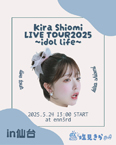 【塩見きらLIVE TOUR2025 〜idol life〜 in仙台】![]() ※画像をクリックで拡大されます 塩見きら 12:30/13:00 塩見神推しプレミアムチケット:\18000 ・前方確約(最優先入場) ・仙台公演限定塩見デザイン缶バッジプレゼント ・終演後打ち上げParty参加券 ※コース・飲み放題込み 塩見推しチケット:\10000 ・神推しプレミアムチケットの次に優先入場 ・仙台公演限定塩見デザイン缶バッジプレゼント 一般チケット:\3000 学生チケット:\1500 打ち上げのみ参加チケット:\10000 ※コース・飲み放題込み ※Livepocket 当日のスケジュール(予定) ※やむを得ず変更になる可能性がございます。 12:15〜 前物販開始 12:30〜 入場開始 13:00〜 開演 終演後:待ち合わせ会 ※列途切れ次第終了 15:30~17:00 塩見と打ち上げParty ※コース・飲み放題、途中退出可 (開催場所は参加者のみに別途ご連絡いたします) |